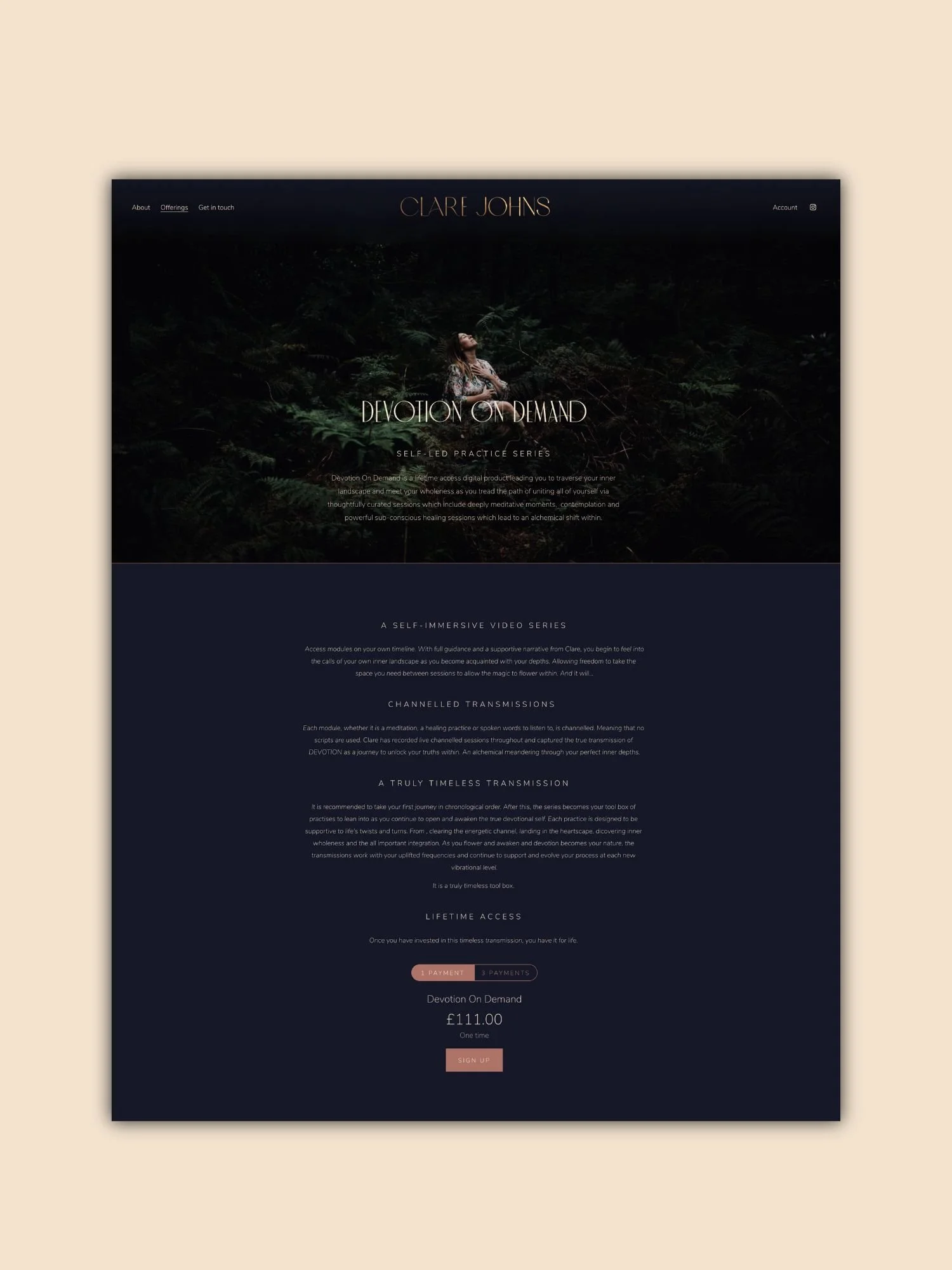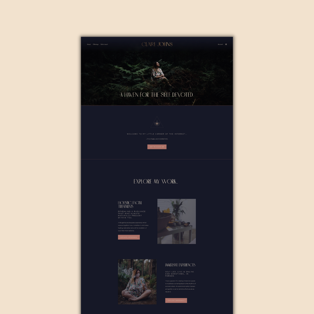 A big part of the brief was to simplify the backend of Clare’s business - so we se up Acuity scheduling, bought her courses over from Kajabi to Squarespace and created a beautiful home that reflected the new branding we came up with.